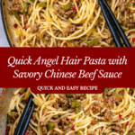 This Angel Hair Pasta with Chinese Beef Sauce combines tender ground beef, vibrant bell peppers, and fragrant garlic in a savory sauce served over delicate pasta. It’s a quick and flavorful dish perfect for a satisfying weeknight dinner.