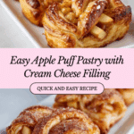 This Apple Puff Pastry recipe combines tender, cinnamon-spiced apples with a creamy cheese filling wrapped in flaky, golden puff pastry. It’s a perfect dessert or sweet snack that’s surprisingly easy to make and impressive to serve.