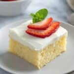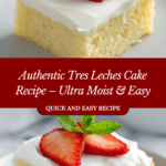This authentic Tres Leches Cake recipe features a light and airy sponge cake soaked in a rich mixture of three different milks—whole milk, sweetened condensed milk, and evaporated milk—making it ultra moist and irresistibly sweet. Topped with fluffy whipped cream and garnished with fresh sliced strawberries and mint, this traditional Mexican dessert is perfect for any occasion and loved by all.
