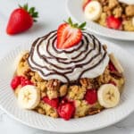 This Banana Split Dump Cake is a delightful and easy-to-make dessert combining the flavors of strawberry pie filling, crushed pineapple, and a white cake mix. Topped with sliced bananas, whipped cream, and chocolate syrup, it’s reminiscent of the classic banana split in cake form. Perfect for serving warm and impressing guests with minimal effort.