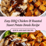 BBQ Chicken & Roasted Sweet Potato Bowls are a delicious and satisfying meal combining smoky, tender chicken with sweet, caramelized potatoes and fresh, vibrant toppings. This hearty dish is perfect for a quick dinner, meal prep, or a crowd-pleasing option full of balanced flavors and nutrients.