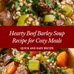Beef Barley Soup is a comforting and hearty dish perfect for chilly days. Packed with tender beef, wholesome barley, and flavorful vegetables, this soup warms you from the inside out.