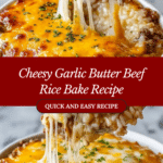 Keywords: beef casserole, garlic butter rice, cheesy beef bake, comfort food, dinner recipe, baked beef dish