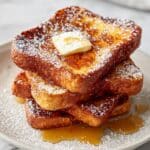 This Best French Toast Recipe features thickly sliced challah or brioche bread soaked in a rich custard mixture of half-n-half, eggs, sugar, vanilla, and cinnamon, then pan-fried to golden perfection. Perfect for a decadent breakfast or brunch, it serves up fluffy, flavorful slices that pair beautifully with traditional toppings like maple syrup and powdered sugar.