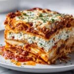 This Best Lasagna Recipe delivers a hearty, comforting dish featuring layers of rich beef marinara sauce, creamy ricotta cheese mixture, tender lasagna noodles, and gooey melted mozzarella. Perfect for family dinners or special occasions, this classic Italian recipe combines savory flavors and cheesy goodness baked to golden perfection.
