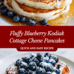 These Blueberry Kodiak Cottage Cheese Pancakes are a protein-packed, fluffy breakfast treat combining the wholesome goodness of Kodiak Cakes Power Cakes mix, creamy low-fat cottage cheese, and fresh blueberries. Perfect for a nutritious start to the day, they deliver a delightful balance of flavors and textures with hints of vanilla and cinnamon.