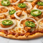 - Step 7: Layer the chips with butter chicken, cheese, sliced onion, and jalapeños in that order. Bake for 9–14 minutes until the cheese melts and bubbles.