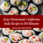 California Rolls are a popular type of sushi roll that combines flavorful sushi rice seasoned with vinegar, sweet imitation crab mixed with creamy mayonnaise, and fresh avocado and cucumber for a refreshing bite. This recipe guides you through making these delicious, restaurant-quality rolls at home in just 30 minutes, perfect for a light lunch or an impressive appetizer.