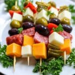 Keywords: charcuterie skewers, appetizer, party food, easy appetizer, holiday appetizer, meat and cheese skewers, finger food, picnic food