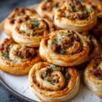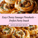 Cheesy Sausage Pinwheels are a tasty and easy-to-make appetizer featuring savory sausage, creamy cheese, and flaky pastry. They make perfect bite-sized treats for parties, game days, or family gatherings. Everyone will love these flavorful little pinwheels!