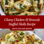 This Chicken & Broccoli Stuffed Shells recipe combines tender jumbo pasta shells filled with a savory mixture of shredded chicken, steamed broccoli, and a blend of creamy cheeses. Baked in marinara sauce and topped with melted mozzarella, this comforting casserole is perfect for a hearty family dinner or special occasion.