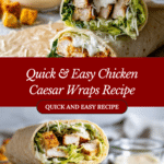 These Chicken Caesar Wraps combine crisp romaine lettuce, tender cooked chicken, creamy Caesar dressing, and savory Parmesan cheese all wrapped in warm, soft tortillas. Perfect for a quick lunch or light dinner, they offer the classic flavors of a Caesar salad in a convenient handheld form that’s ready in just 15 minutes.