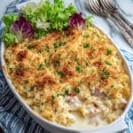 - Breadcrumb topping adds crunch—if you prefer a softer casserole, you can omit it or use crushed crackers instead.