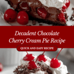 This rich and decadent Chocolate Cherry Cream Pie features a smooth chocolate filling layered with a sweet cherry topping, all nestled in a crisp graham cracker or chocolate cookie crust. Perfect for celebrations or a special dessert, this pie combines creamy chocolate, tart cherries, and a buttery crust for an irresistible treat.