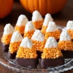 These Chocolate Dipped Candy Corn Rice Crispy Treats are a fun and festive twist on a classic snack. Combining the crunch of crispy rice cereal with sweet marshmallows and colorful chocolate coatings, they make the perfect Halloween or autumn treat.