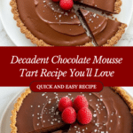 This Chocolate Mousse Tart is a decadent dessert that combines a buttery graham cracker crust with rich, airy chocolate mousse and a glossy chocolate ganache topping. Perfect for chocolate lovers, it’s an elegant treat that’s surprisingly simple to make at home.