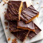 The separation often happens if the chocolate isn’t fully melted, is a high cacao percentage, or if the toffee layer cools too much before spreading the chocolate. Using chopped chocolate, working quickly, and spreading chocolate while the caramel is still warm helps prevent this.