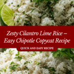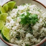 This Cilantro Lime Rice – Chipotle Copycat recipe offers a fluffy, zesty, and fresh rice side dish perfect for burrito bowls, tacos, or weeknight dinners. Made with extra long grain rice, fresh lime juice, and chopped cilantro, it comes together easily in about 30 minutes for a flavorful base without the takeout price.