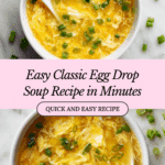This Classic Homemade Egg Drop Soup is a simple and comforting Chinese appetizer made by gently drizzling beaten eggs into flavorful simmering chicken broth. Enhanced with ginger, soy sauce, and sesame oil, this soup offers silky egg ribbons and a subtle savory taste, perfect for a quick starter or light meal.