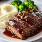 Classic Meatloaf with a sweet and savory glaze, combining ground beef with aromatic vegetables and herbs, baked to perfection for a tender, flavorful meal.