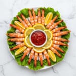 Keywords: shrimp cocktail, appetizer, seafood platter, party food, New Year appetizer, chilled shrimp, cocktail sauce