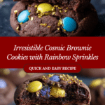 Cosmic Brownie Cookies combine the rich fudgy flavor of brownies with the chewy texture of classic cookies. Topped with chocolate frosting and colorful rainbow sprinkles, these delightful treats are perfect for any occasion and easy to bake at home.