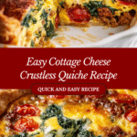 This Cottage Cheese Crustless Quiche is a delicious, protein-packed dish perfect for breakfast, brunch, or a light dinner. It’s simple to make, naturally gluten-free, and customizable with your favorite vegetables or meats.