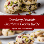 Cranberry Pistachio Shortbread Cookies are buttery, tender, and subtly sweet cookies featuring tart dried cranberries and crunchy pistachios. These festive cookies are perfect for holiday gatherings or cozy snacks, combining rich vanilla flavor with a delicate crumbly texture. They are easy to make with simple ingredients and baked to golden perfection.