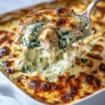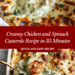 This Irresistible Creamy Chicken and Spinach Casserole is a rich, comforting dish featuring tender bite-sized chicken cubes layered with fresh spinach and a luscious creamy sauce, all topped with melted Monterey Jack and Parmesan cheese. Perfectly baked to golden perfection, it’s an easy yet elegant meal ideal for busy weeknights or cozy dinners.