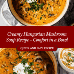 This Creamy Hungarian Mushroom Soup is a rich and comforting dish featuring a blend of mixed mushrooms simmered in a paprika-spiced broth, finished with sour cream and fresh herbs. Perfect as a hearty appetizer or a light meal, this soup brings traditional Hungarian flavors to your table with a creamy texture and savory depth.
