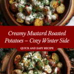Keywords: creamy mustard roasted potatoes, hobbit potatoes, roasted baby potatoes, mustard cream sauce, winter side dish