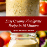 This creamy vinaigrette recipe combines the tangy sharpness of red wine vinegar with the rich flavors of mayonnaise, Parmesan cheese, and Dijon mustard. Enhanced with garlic, oregano, and a hint of red pepper flakes, it creates a balanced and flavorful dressing perfect for salads or as a dipping sauce. Ready in just 10 minutes, it’s an easy and versatile addition to your kitchen repertoire.