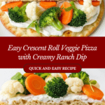 This Crescent Roll Veggie Pizza is a colorful and creamy appetizer that’s perfect for parties or a light snack. Combining a golden, flaky crust with a tangy ranch cream cheese spread and fresh vegetables, it offers a delightful mix of flavors and textures.