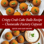 These Crispy Crab Cake Balls are a delightful appetizer inspired by the Cheesecake Factory’s famous recipe. Golden, crunchy on the outside and tender on the inside, they pair perfectly with a tangy mustard dipping sauce. Ideal for parties or a special treat at home.