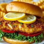 This Crispy Lemon Pepper Chicken Sandwich is a perfect handheld meal with golden, crunchy chicken, fresh veggies, and a tangy lemon sauce. With a zesty breading and creamy sauce, it’s a satisfying dish that’s quick and easy to prepare for any occasion.