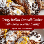 These Crunchy Italian Cannoli Cookies bring the classic flavors of Sicily right to your kitchen. With crisp cocoa-spiced shells and a creamy sweet ricotta filling studded with chocolate chips, they make a delightful treat perfect for any occasion.