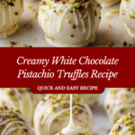 These Divine White Chocolate and Pistachio Truffles are a luxurious and easy-to-make treat combining creamy white chocolate with crunchy pistachios. Perfect for gifting or indulging, these delicate truffles offer a rich, buttery flavor balanced by the nutty texture of pistachios, finished with a choice of coatings for extra flair.