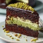 Keywords: Chocolate Cake, Pistachio Cake, Kataifi Pastry, Middle Eastern Dessert, Whipped Ganache, Chocolate Pistachio Cake