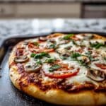 Store leftover pizza in an airtight container in the refrigerator for up to 3 days. Reheat in the oven or a skillet to keep the crust crispy. Avoid microwaving as it can make the crust chewy.