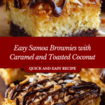 These Easy Samoa Brownies are a delightful twist on classic brownies, topped with toasted coconut, rich caramel, and drizzled with melted chocolate. Perfect for satisfying your sweet tooth, they bring the flavors of the famous Samoa cookie into a fudgy brownie form.