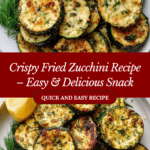 Fried zucchini is a delicious treat that combines a crispy exterior with tender, flavorful zucchini inside. Coated in a seasoned batter and fried to golden perfection, this dish makes a perfect appetizer, side, or snack for any occasion.