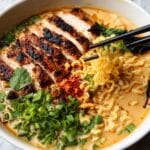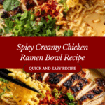 If you’re craving a spicy chicken ramen bowl with cream sauce, this Fiery Chicken Ramen with Creamy Garlic Sauce offers the perfect fusion of heat, richness, and umami. Tender, flavorful chicken is coated in a bold, spicy sauce and paired with silky noodles and a luscious garlicky cream sauce that balances the spice beautifully.