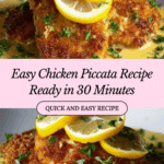 Chicken Piccata is a bright and tangy Italian classic that’s surprisingly easy to make. With a simple lemon, butter, and caper sauce, this dish brings restaurant-quality flavors to your dinner table in just 30 minutes.