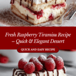 This Fresh Raspberry Tiramisu offers a delightful twist on the classic Italian dessert by incorporating juicy raspberries and a creamy mascarpone filling. Layers of coffee-soaked ladyfinger cookies are topped with mashed and whole raspberries, then enveloped in a light, fluffy mascarpone and whipped cream mixture. Chilled to perfection and dusted with cocoa powder, this no-bake dessert is elegant, refreshing, and ideal for any occasion.