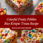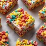 Delight in the colorful and crispy Fruity Pebbles Rice Krispie Treats, a fun twist on a classic snack combining vibrant Fruity Pebbles cereal with traditional Rice Krispies and melty marshmallows, perfect for parties or a sweet treat anytime.