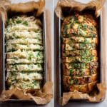 10. Cool and Serve: Remove loaves from oven and cool in tins for 10 minutes before removing. Serve warm and enjoy pulling apart the cheesy, garlicky layers.