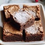 7. Cool and Serve: Allow the brownies to cool completely in the pan. Once cooled, dust the top with confectioners’ sugar and cut into 16 squares for serving.
