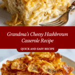 Grandma’s Hash Brown Casserole is a comforting, cheesy dish that’s perfect for family gatherings or cozy dinners. This beloved recipe features tender hash browns baked in a creamy mixture topped with a crunchy cornflake crust. Kentucky grandmas truly know how to bring warmth to the table with this classic casserole!