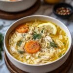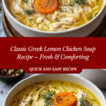 This comforting Greek Lemon Chicken Soup, also known as Avgolemono, combines bright lemon juice, tender chicken, and creamy egg yolks to create a rich and tangy broth. Infused with shredded carrots, onion, celery, and seasoned chicken broth, it’s a classic, hearty soup perfect for any season.