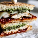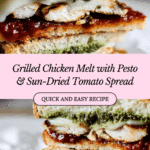 This Grilled Chicken Melt with Sun-Dried Tomato Spread and Pesto is a flavorful and satisfying sandwich perfect for lunch or a casual dinner. Juicy grilled chicken thighs are paired with melted fresh mozzarella, bright pesto, and tangy sun-dried tomato spread, all nestled in toasted ciabatta rolls. It’s an easy way to elevate a simple grilled chicken into something special.